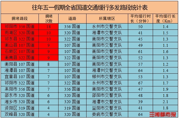 国省道方面,预测假期衡阳、永州、湘潭等地部分国道,郴州、衡阳、岳阳、益阳等地的部分省道因车流量大,局部易发生交通缓行。城市重点商圈、广场周边道路车流量较大,易出现短时交通缓行。