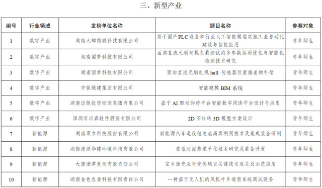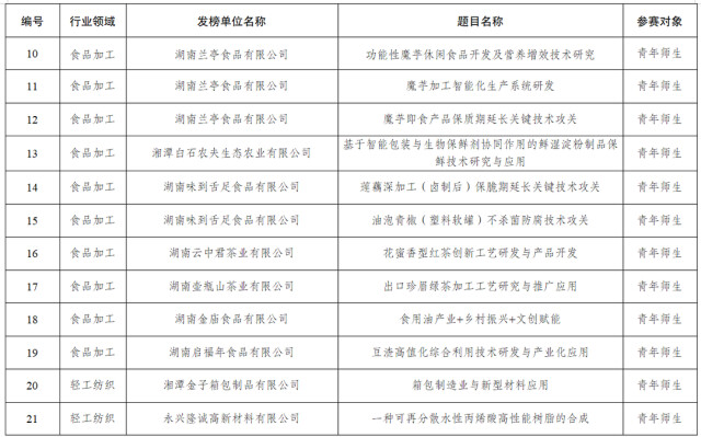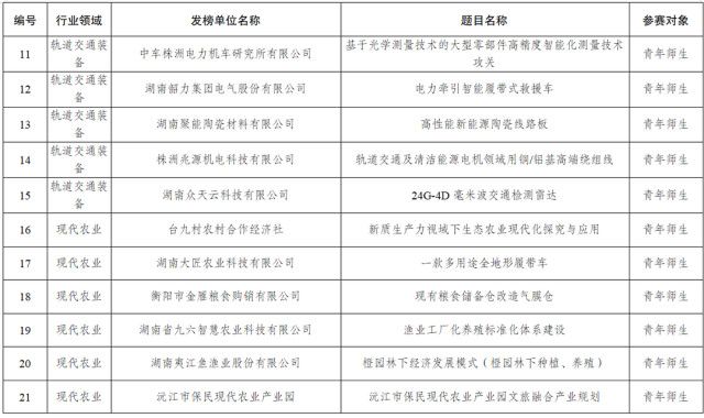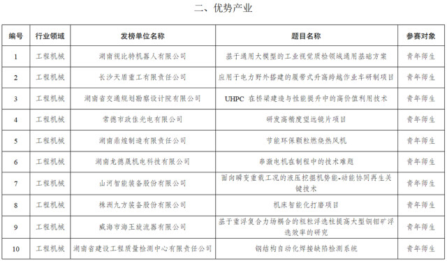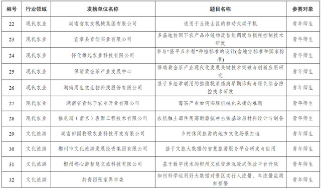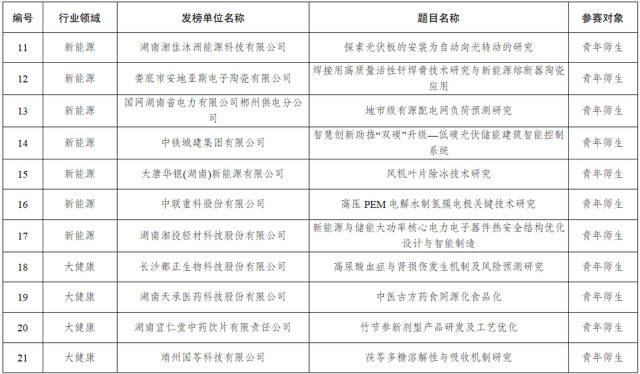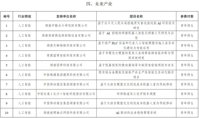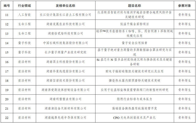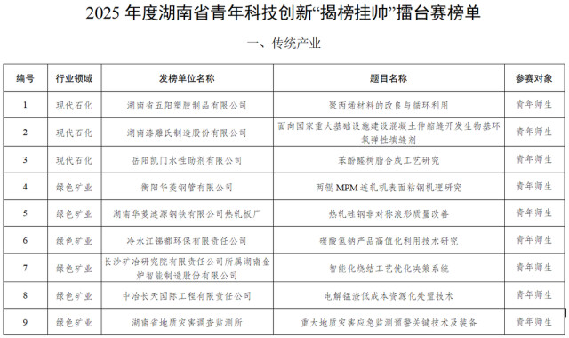 2025年度湖南青年科技创新“揭榜挂帅”擂台赛榜单