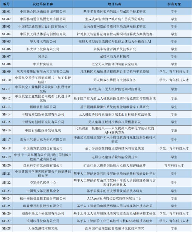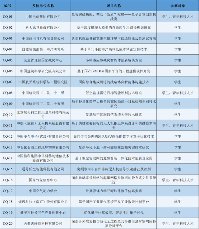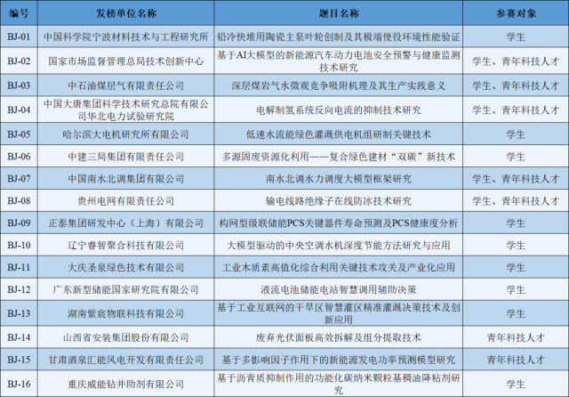 2025年度中国青年科技创新“揭榜挂帅”擂台赛榜单
