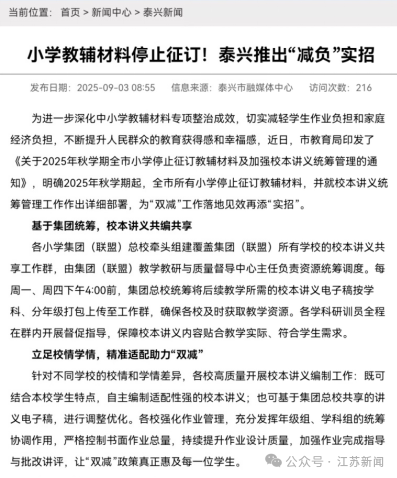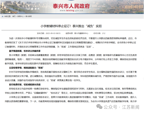 泰兴市的讲义统筹政策,也要求:立足校情学情,精准适配助力“双减”。