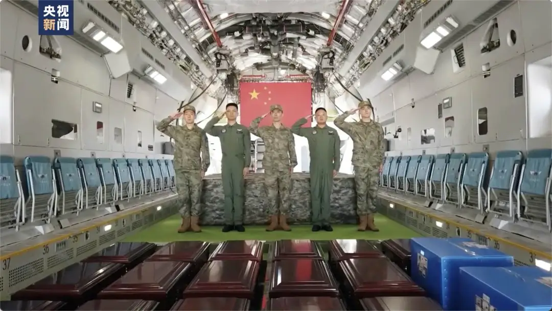 飞机起飞前,运-20机组人员通过机内广播,向志愿军忠烈致敬: