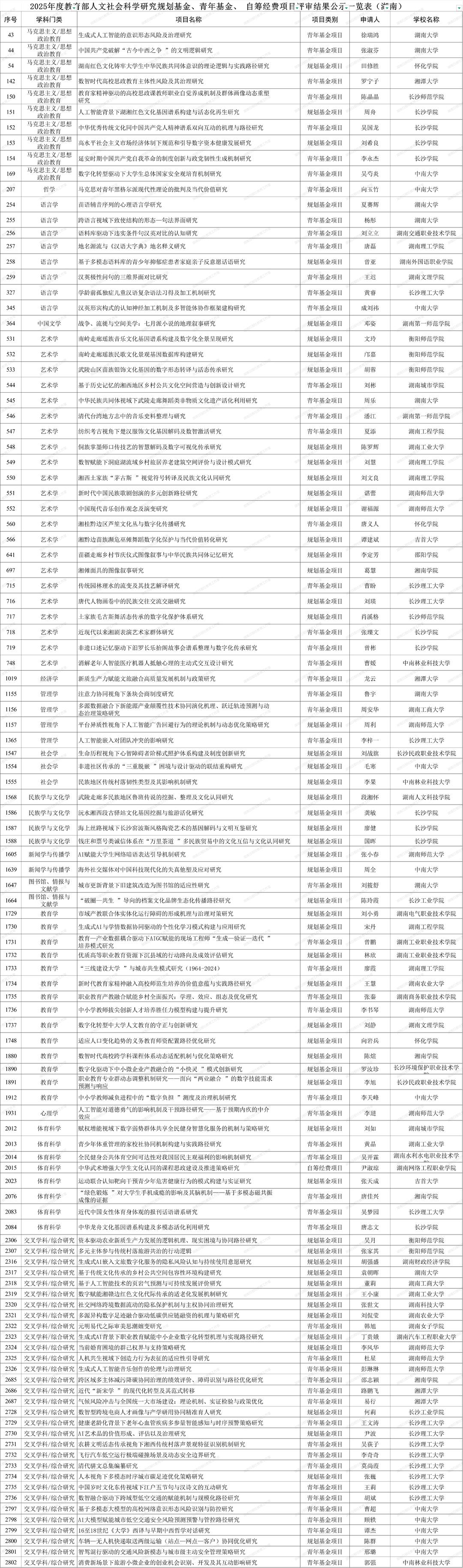 附件:教育部社科司关于2025年度教育部人文社会科学研究一般项目评审结果的公示
