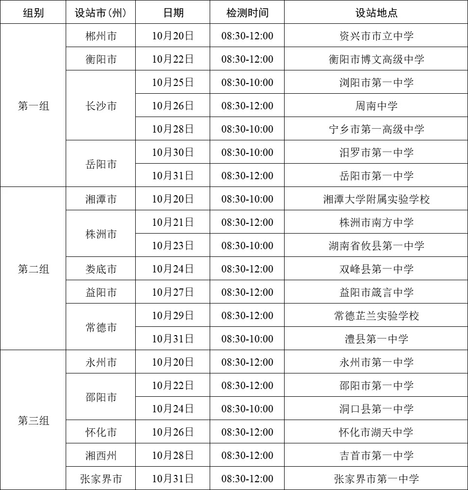 根据2026年度空军招飞工作安排,10月下旬,空军招飞局广州选拔中心将派初选组赴湖南各市(州),对报考空军飞行学员的学生进行初选检测。