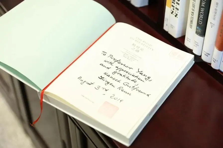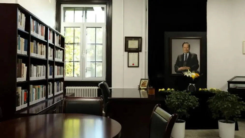 书屋一角还原了杨振宁先生在清华大学高等研究院的办公室场景,从家具布置到实物摆设,力求呈现杨先生生前伏案工作的原貌,为参观师生营造一种跨越时空的对话感和亲切感。步入书屋,仿佛能感受到杨振宁先生那份严谨的治学态度、深厚的爱国情怀和心系母校的深情厚谊。