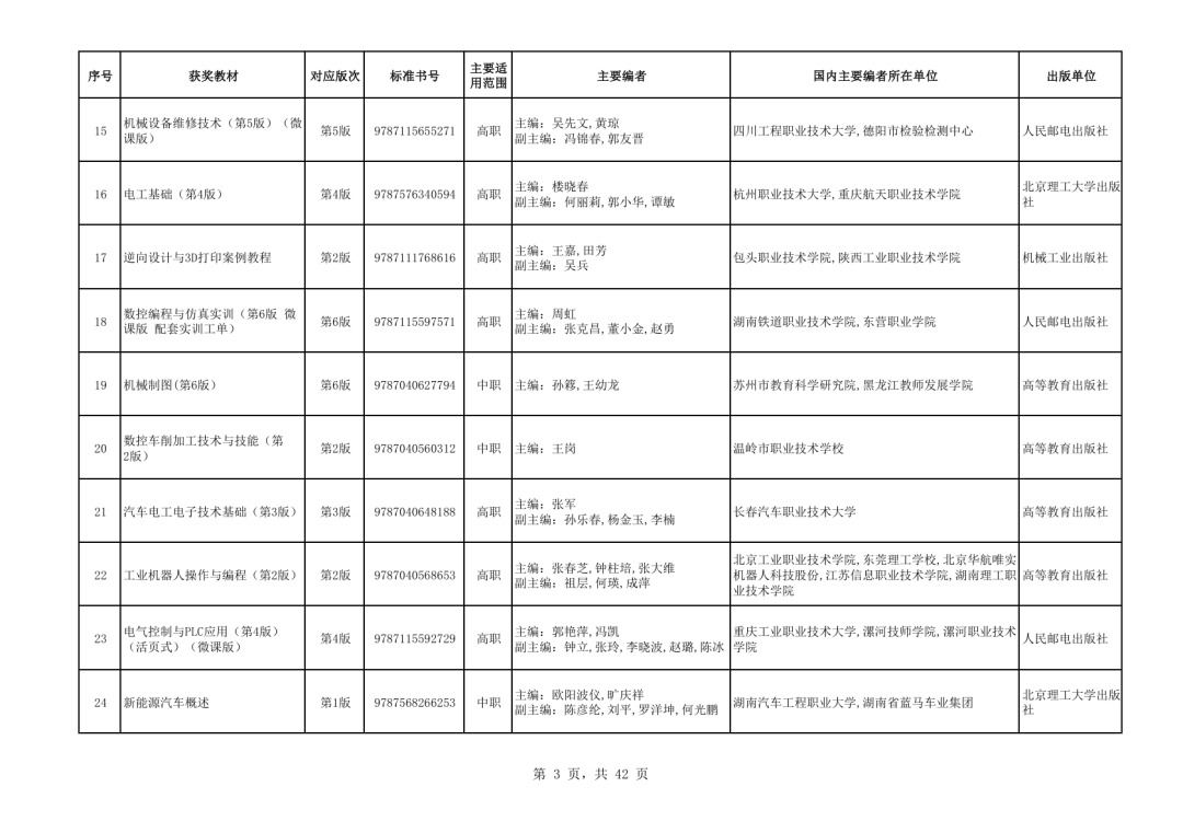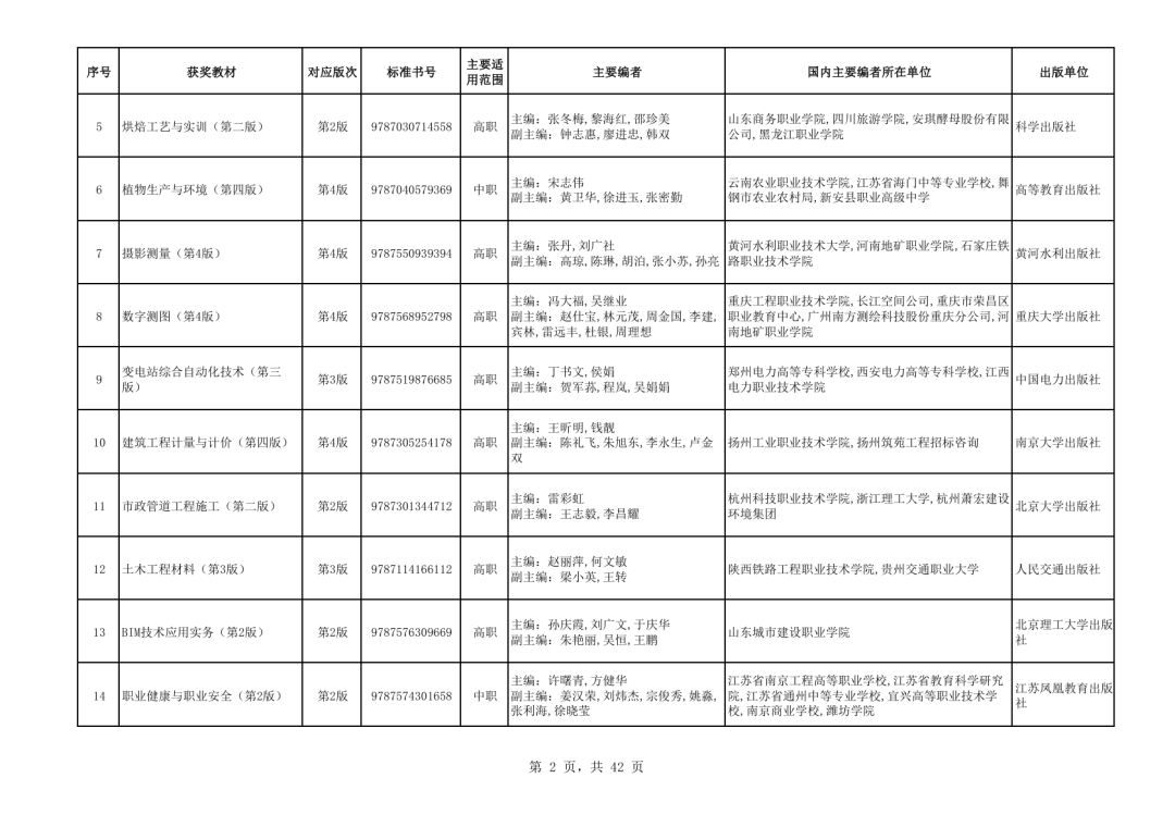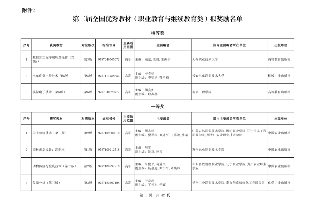 第二届全国优秀教材(职业教育与继续教育类)拟奖励名单(部分)