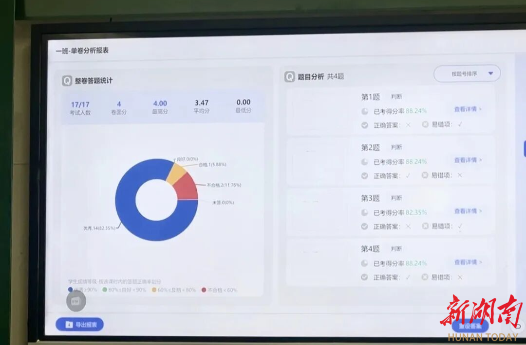 陈静最满意的,是用AI准备试卷讲评课。将网上阅卷系统的数据和整张试卷拍照输入,AI便能自动生成分析报告:选择题第三题错误率达65%,主要混淆项是A;计算题第二问得分率低,需重点讲解……“这为我节省了至少两小时的手工统计时间。”她说。