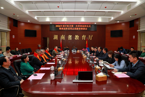近日,2026年委厅机关荣誉退休仪式暨离退休老同志迎新春座谈会举行。省教育厅党组书记、厅长高山,省教育厅党组成员、副厅长孙传贵出席活动,与老同志欢聚一堂,共叙情谊、共话教育。
