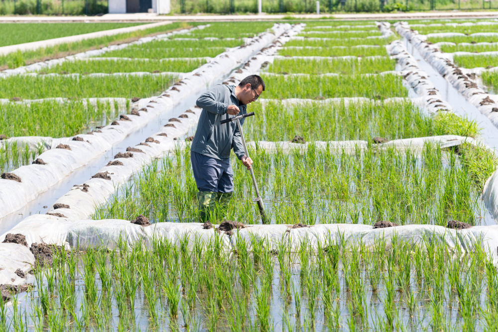 2025年6月18日,在位于黑龙江省双鸭山市宝清县的中国水稻研究所北方水稻研究中心的试验田内,科研人员取耕层土样