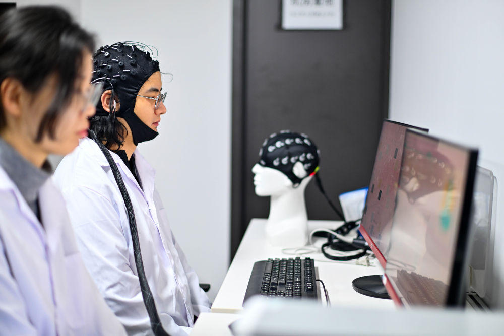 2026年2月27日,在位于天津滨海高新区的中电云脑(天津)科技有限公司,工作人员进行脑机接口技术测试