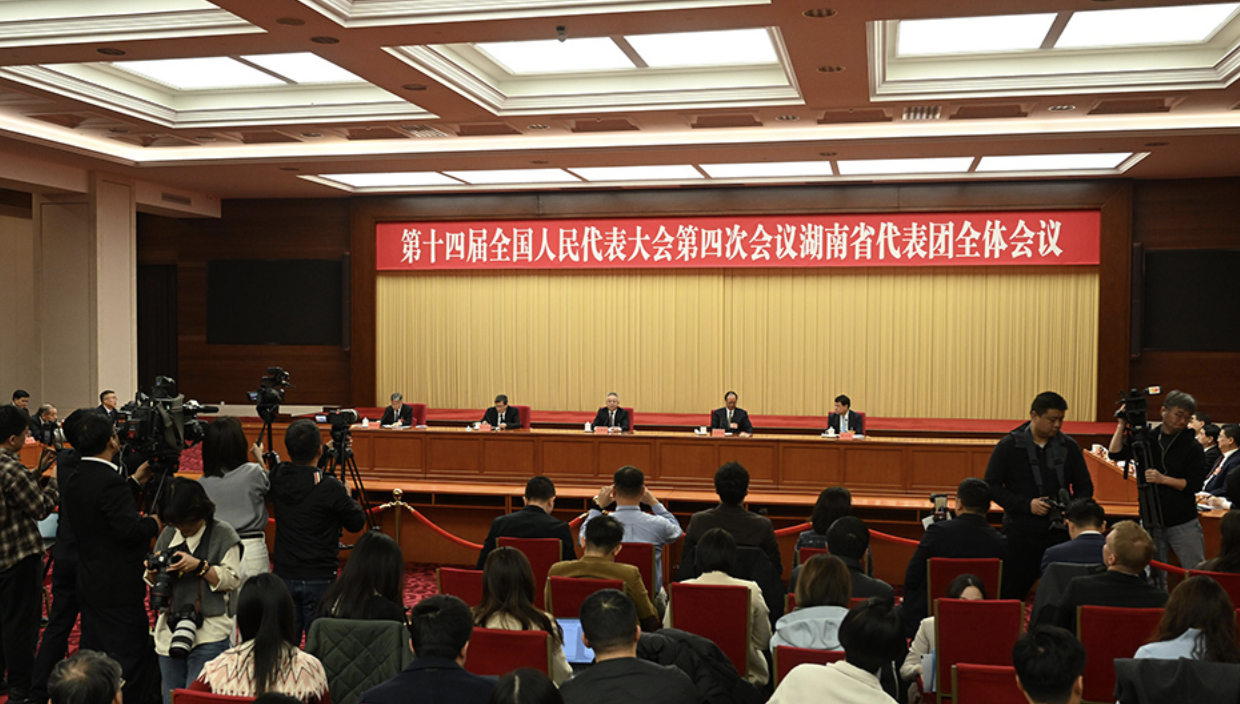 3月7日,湖南代表团在驻地举行第四次全体会议,并向中外媒体开放