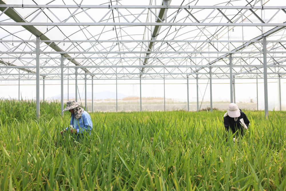 2025年3月21日,工作人员在海南三亚国家南繁科研育种基地收种