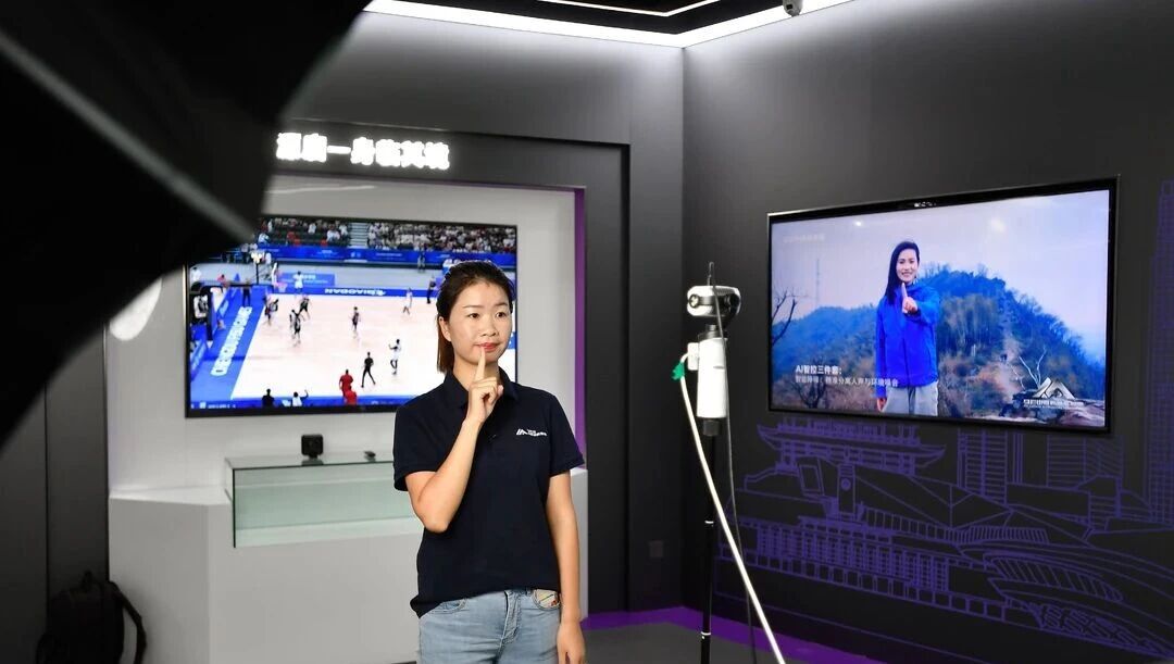 马栏山视频文创产业园,马栏山音视频实验室工作人员通过手势识别,测试双目AI直播相机