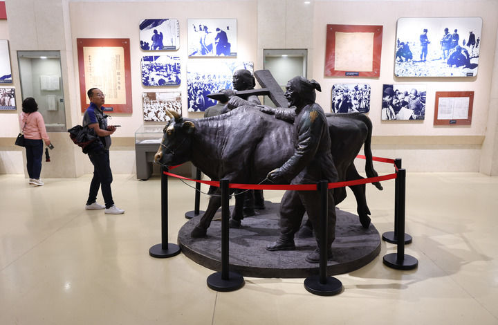 2025年10月8日,游客在河北平山县西柏坡纪念馆参观