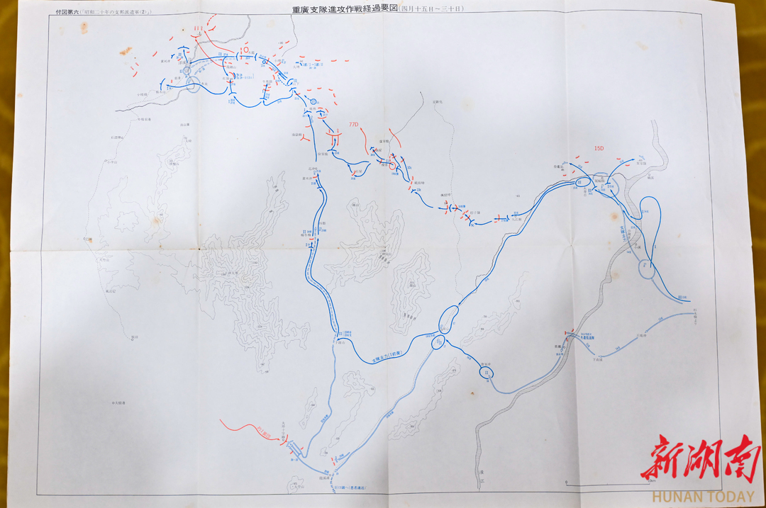 这一天,正值湘西会战爆发81周年。1945年4月9日,侵华日军发动了对中国战场的最后一次大规模进攻。81年后的同一天,这份记录侵略者图谋的作战地图,跨越重洋,抵达了它作为罪证应该安放的地方。