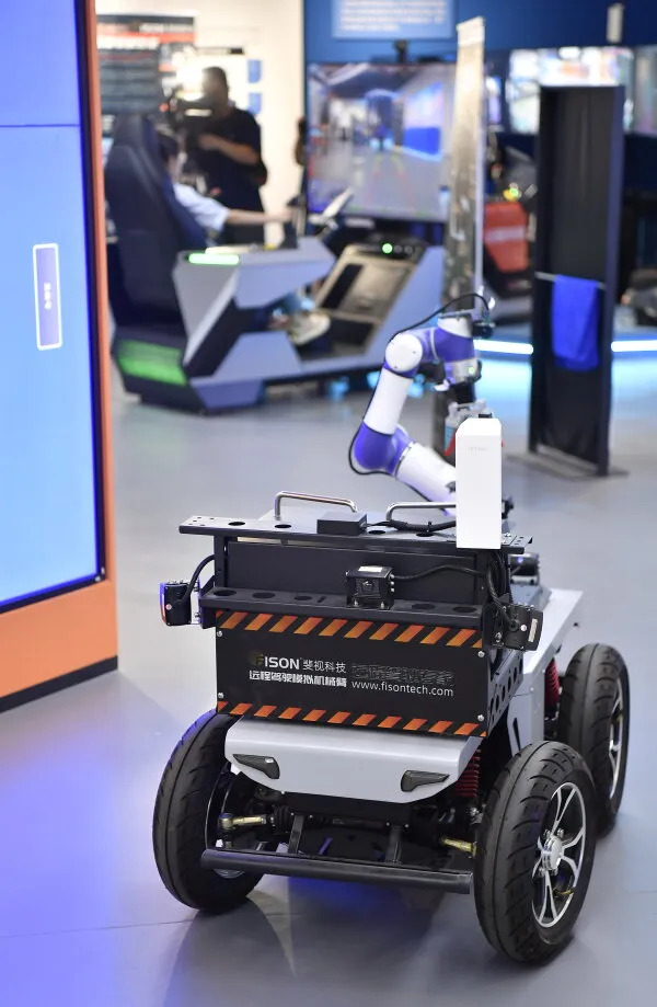 湖南湘江新区大学生创新创业园,工作人员展示入驻企业的远程操控智能工程装备