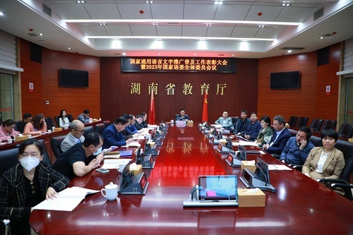 5月10日,国家通用语言文字推广普及工作表彰大会暨2023年国家语委全体委员会议在京召开,教育部党组书记、部长怀进鹏作视频讲话。湖南省教育厅党组书记、厅长夏智伦,湖南省教育厅党组成员、总督学郭建国在湖南分会场参会。
