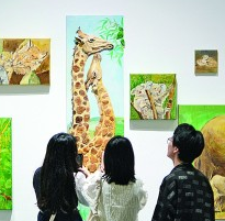 学生在2023南通大学艺术学院毕业展上参观。