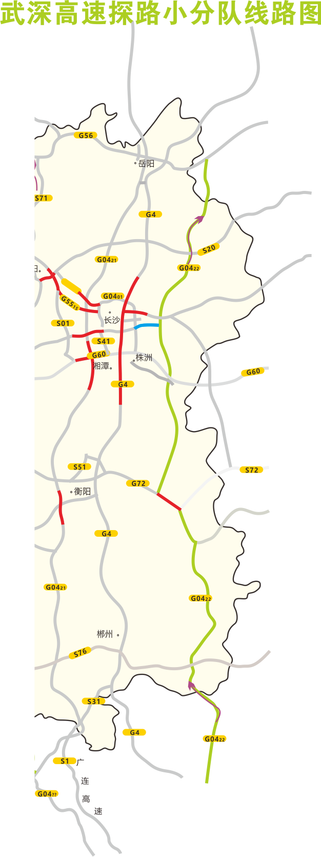 2月2日15时,湖南高速警察4组探路小分队分别从湖南与广东交界的省际卡口出发,沿京港澳高速、许广高速、二广-沪昆高速、武深高速4条高速公路行驶至羊楼司、巴陵、新晃、冬塔。